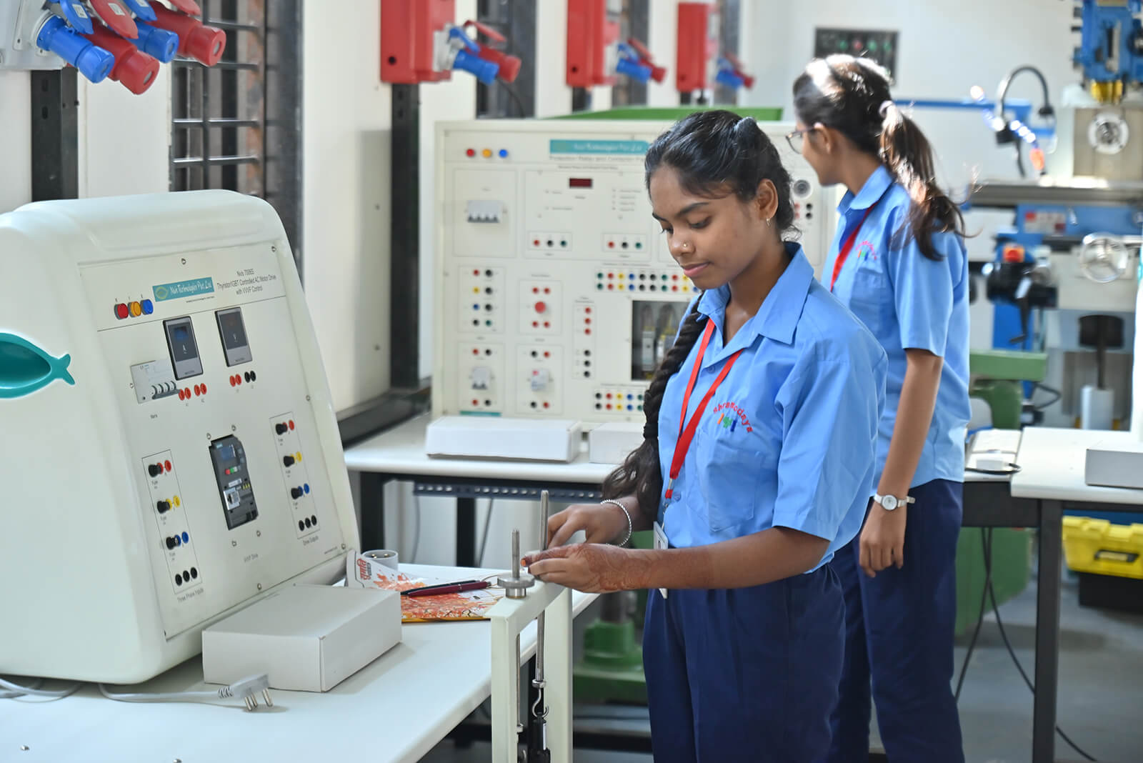 The imparted training on basic Electrical and Electronics sub-systems and its measuring techniques using appropriate Measuring instruments, Operate and troubleshoot AC/DC machines and drives. Acquire the skill of reading and analyzing Electrical and Electronics drawings. Construct, analyze and troubleshoot Electrical and Electronic circuits. Assemble and Disassemble Electrical and Electronic components by Soldering and de-soldering techniques. Carry out Industrial panel wiring. Understand and troubleshoot Protective devices in Electrical system. Understand the Digital logic circuits and its applications. Acquire computer skills such as Software installation. Knowledge onbasicprogramming of Microcontroller and its Interfacing techniques, troubleshooting of electrical & electronics system are also covered.