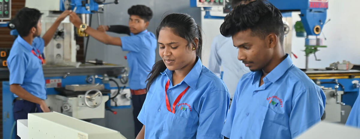 During the two years duration a candidate is imparted training on subjects Professional Skill, Professional Knowledge and Employability Skills related to job role. In addition to this a candidate is entrusted to make/do project work and Extra Curricular Activities to build up confidence. The practical skills are imparted in simple to complex manner & simultaneously theory subject is taught in the same fashion to apply cognitive knowledge while executing practical task.